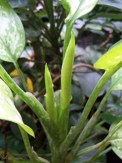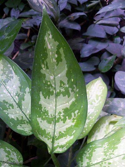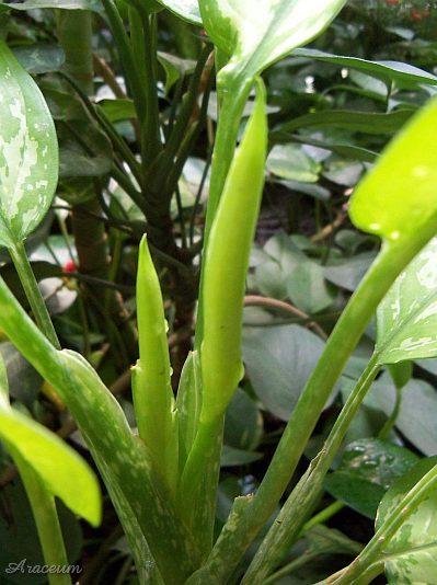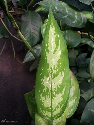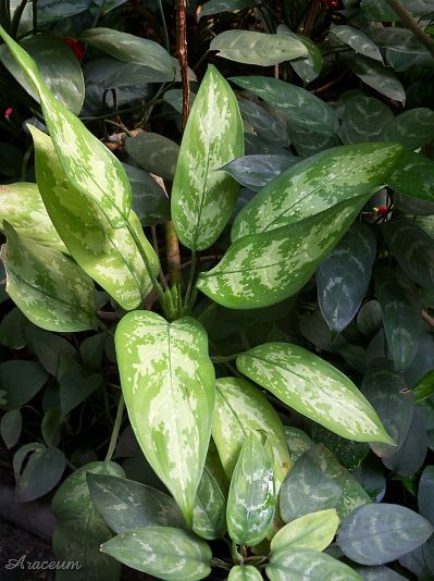 This is a cultivar of A. commutatum with pale yellow leaf variegation.The pattern is present also on the lower side of the leaves.