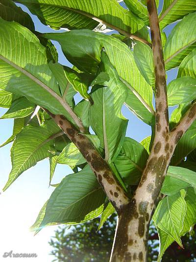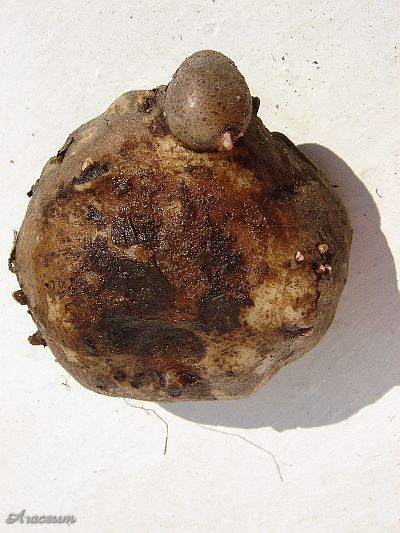 it emerged in the beginning of June. 27 cm of height and the leaf's diameter reached 31 cm. ![]() ![]() 5.5 cm in diameter and had many offsets. |