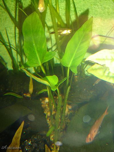 A paludous plant with leaves changing shape with age.