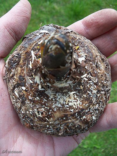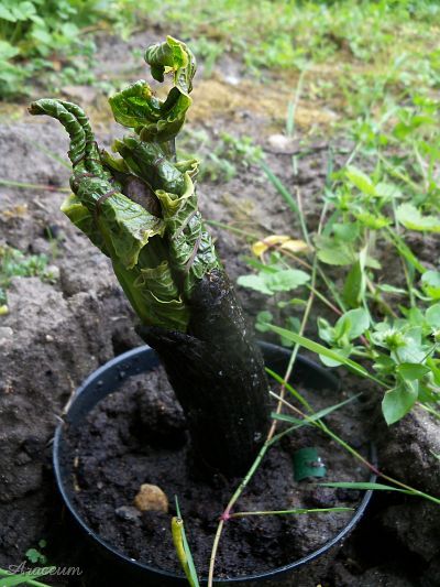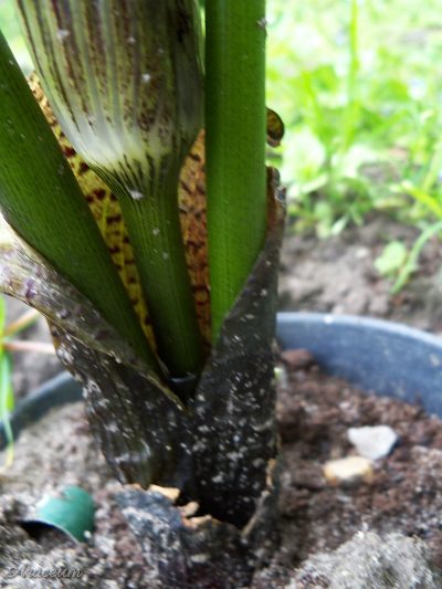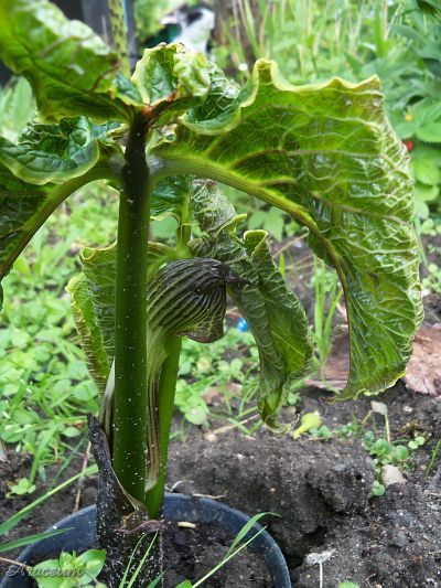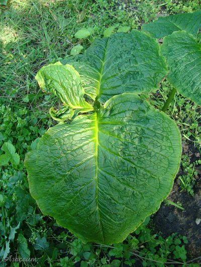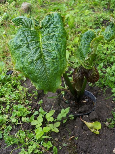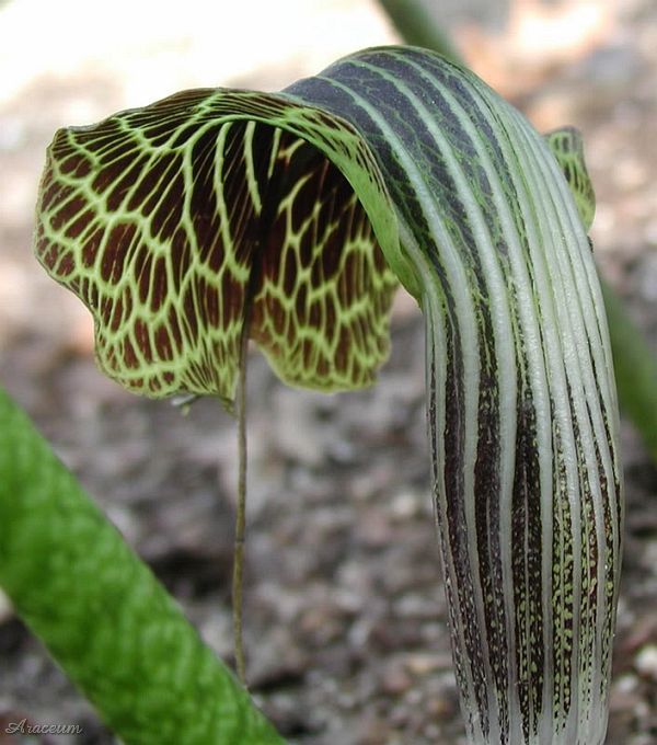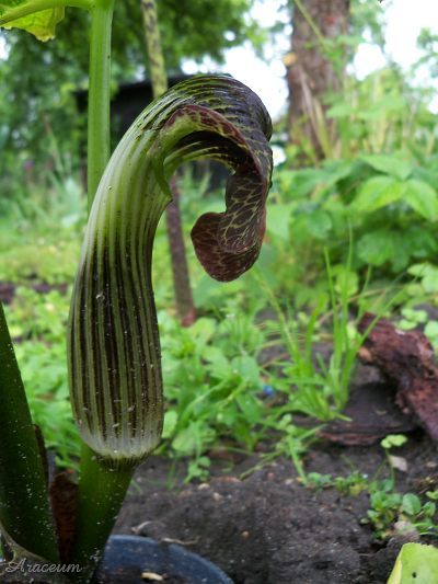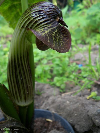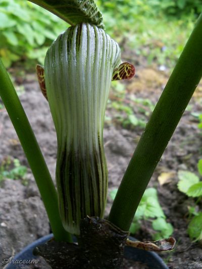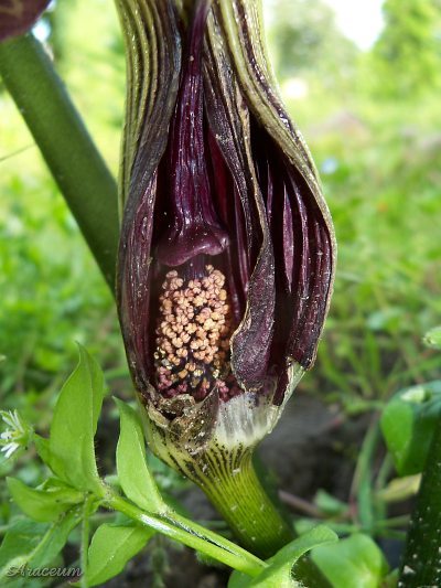 It differs from the typical form in a very broad (galeate) spathe hood.