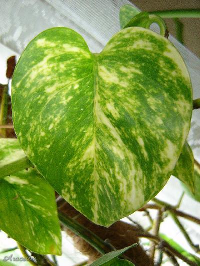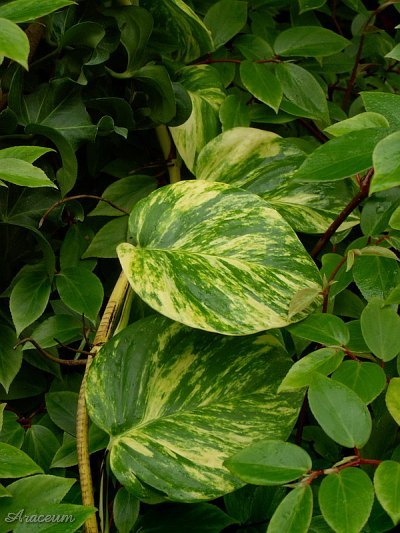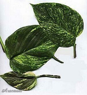 Ten aroid znany jest również niewłaściwie jako Scindapsus aureus i Rhaphidophora aurea.