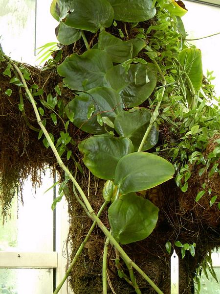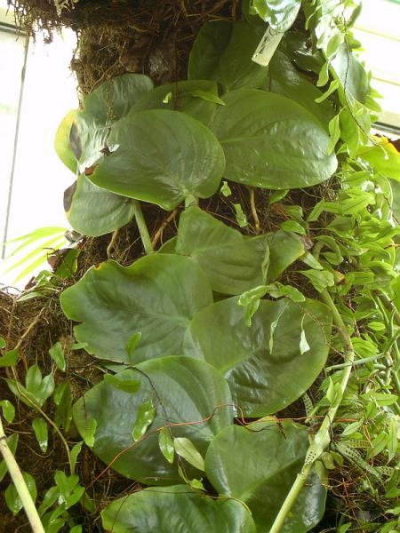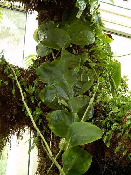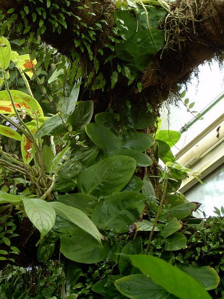 Gdy roślina osiągnie pewną wysokość, otrzymuje więcej światła, liście wyrastają większe i podzielone. To samo można obserwować u wielu gatunków Monstera i Epipremnum pinnatum foto (1-4) © Bartosz T. Zalewski, Ogród Botaniczny Wrocław, 2005 | |