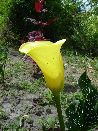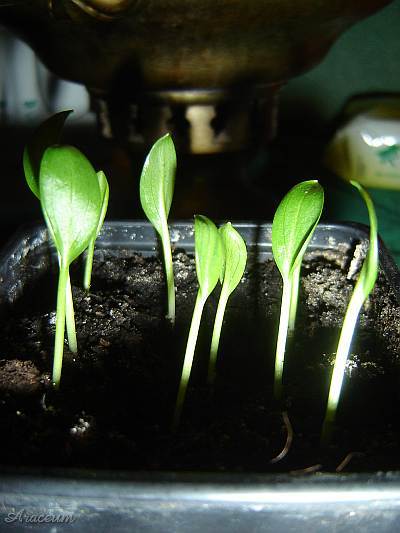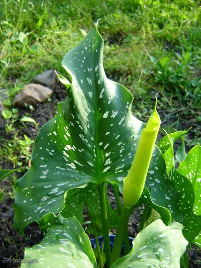 | The leaves are spotted, with the blades 20-25 cm long. |