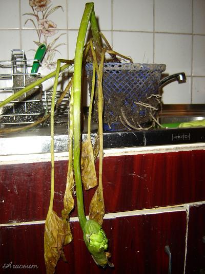 | A ripened one hangs down and remains green. |