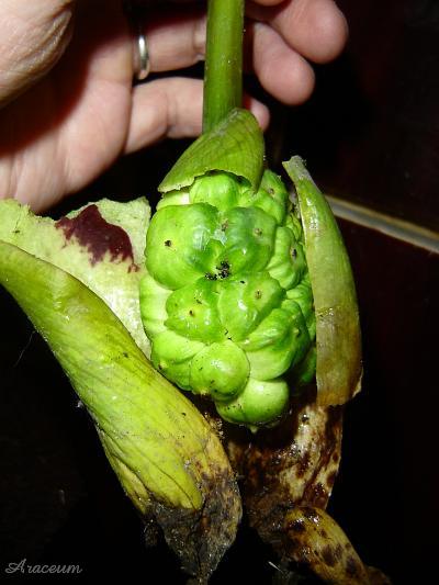 | Female flowers - pollinated. | A ripening infructescence |