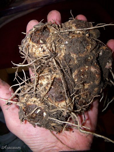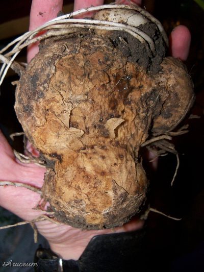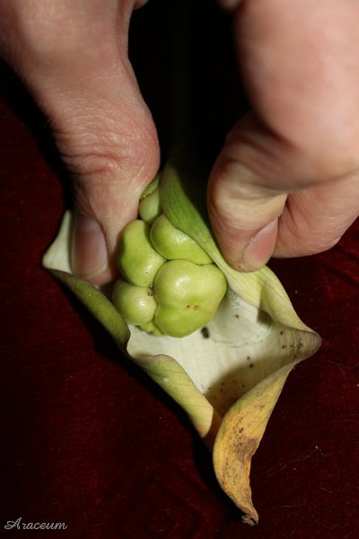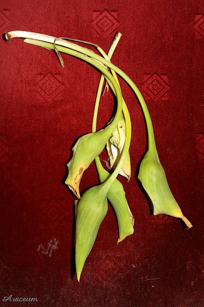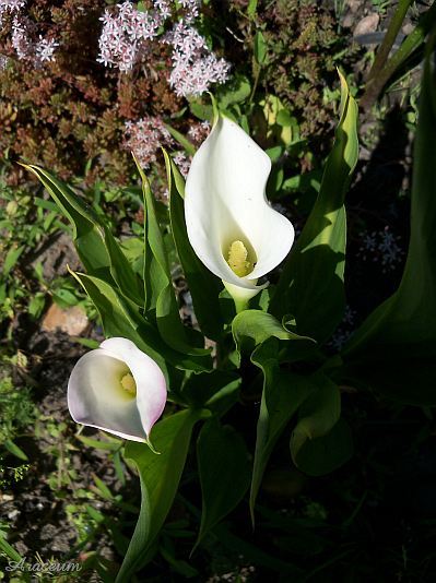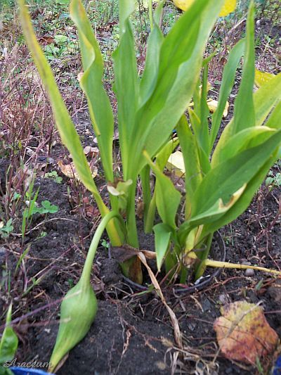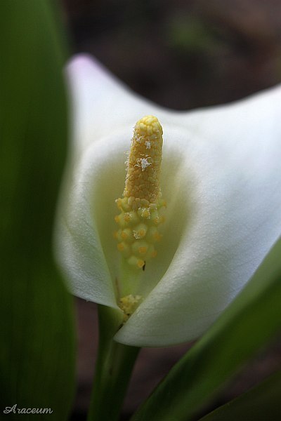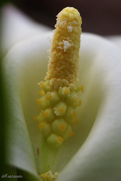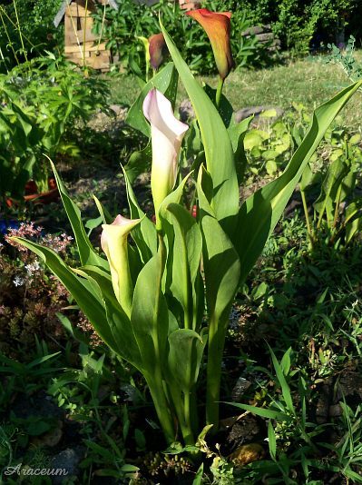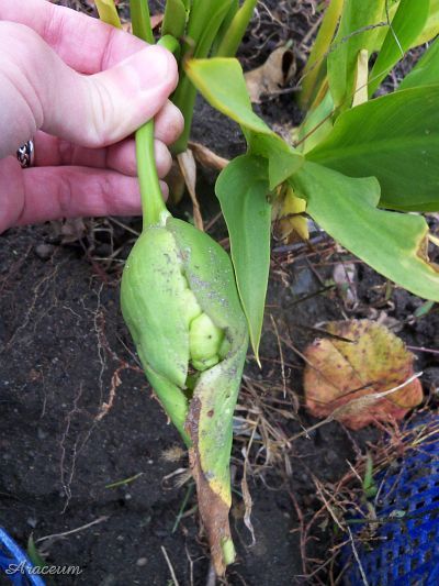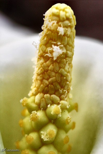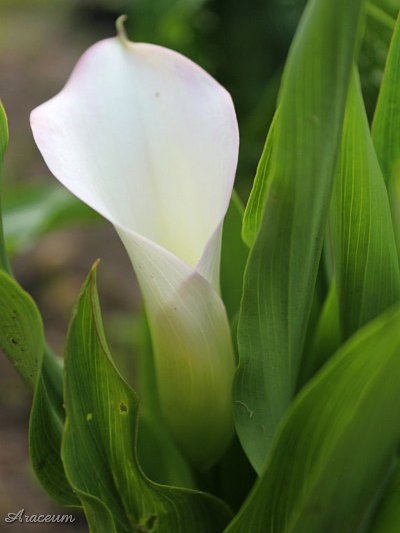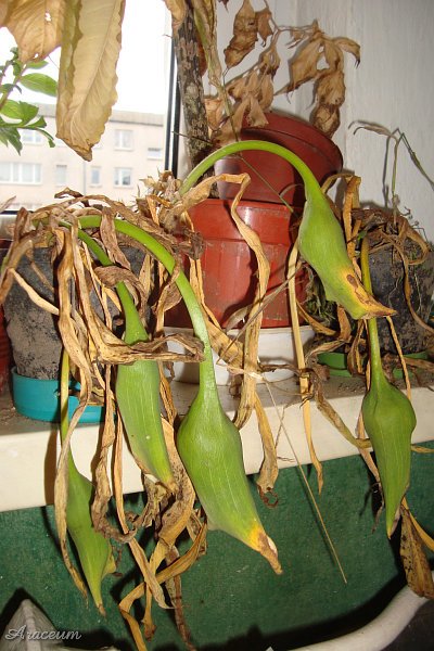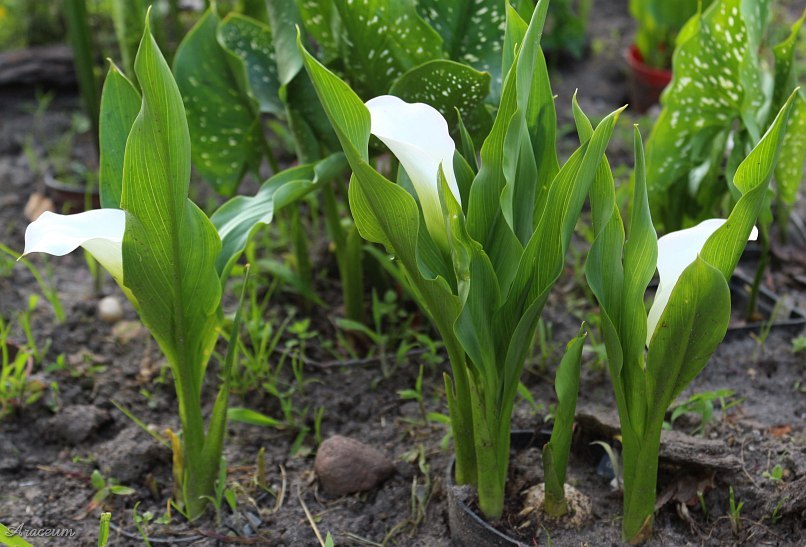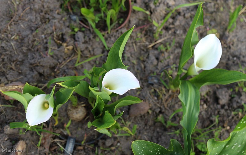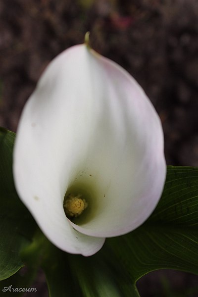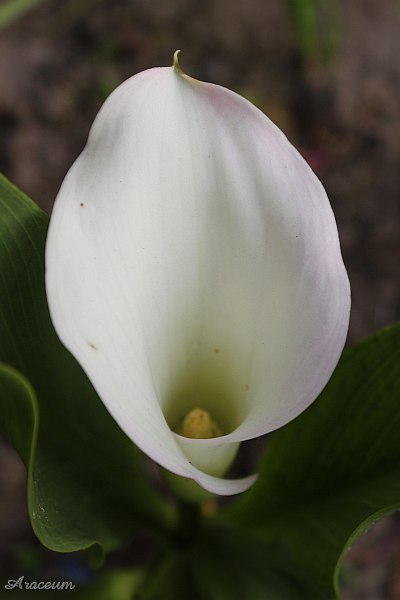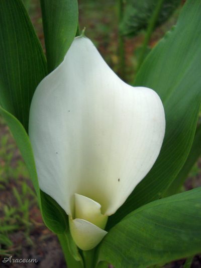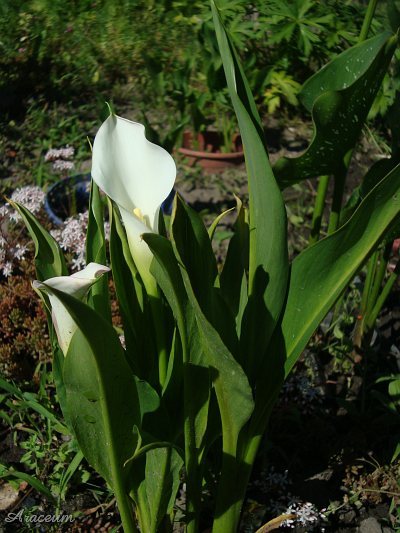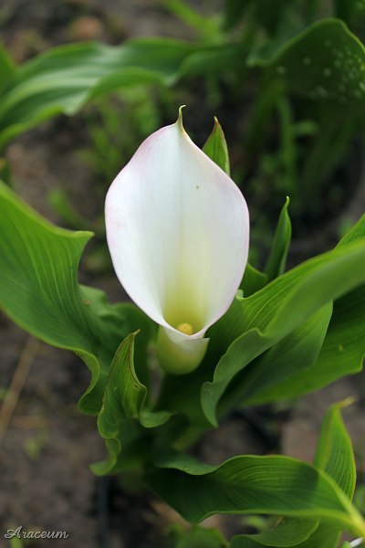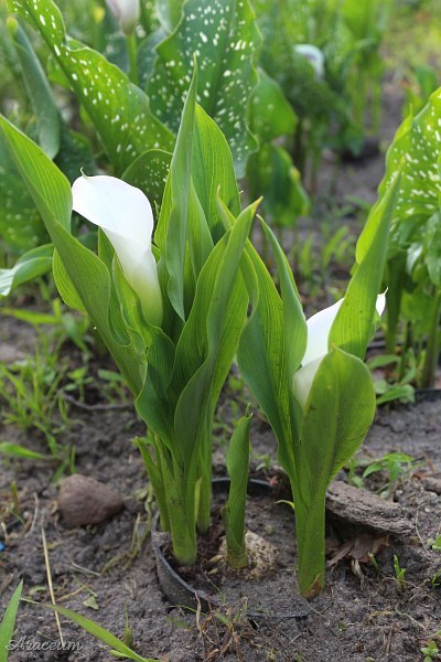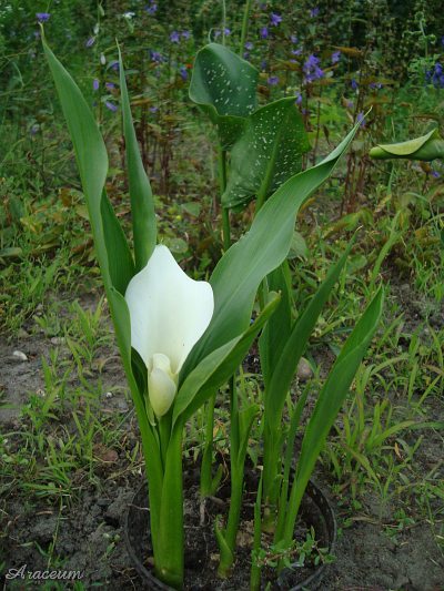 A form or a cultivar with white spathes. It is 35-40 cm tall. Bought in 2010.